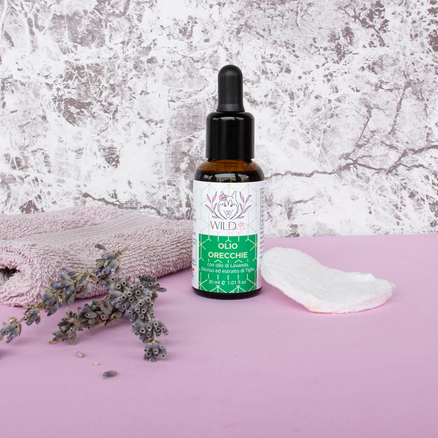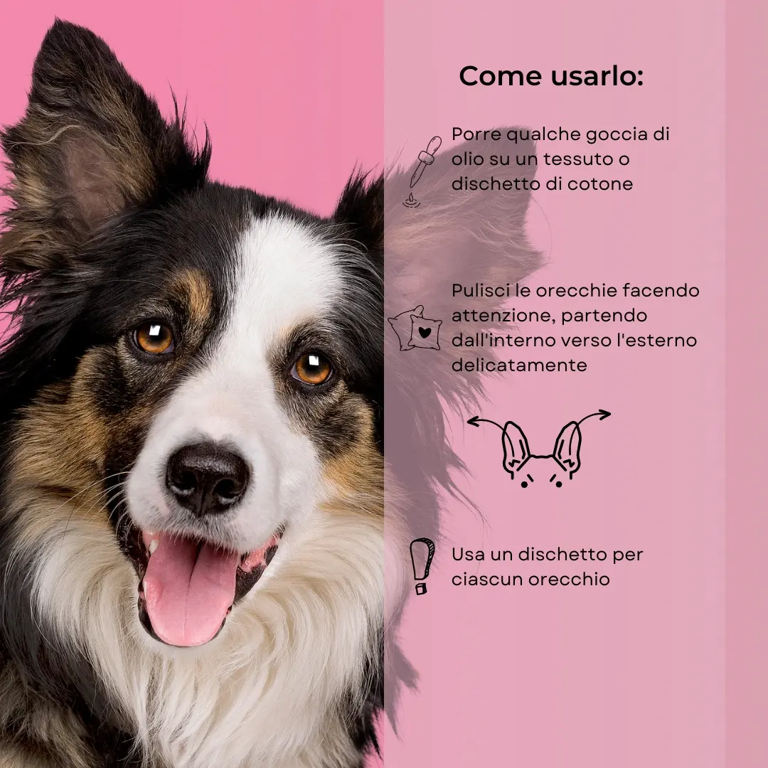 Olio pulizia orecchie per un’igiene delicata ed efficace. Importante per prevenire infezioni e otiti. La sua texture aiuta a previene l’instaurarsi di parassiti e corpi estranei che possono creare infezioni dolorose. Contiene oli di Lavanda ed Elicriso con proprietà antinfiammatorie, astringenti e decongestionanti. L’olio di Girasole è emolliente e idratante, l’estratto di Camomilla e l’olio d’Oliva sono lenitivi e antinfiammatori, l’estratto di tiglio è sedativo e antispasmodico. Può essere usato come coadiuvante nella cura delle otiti.